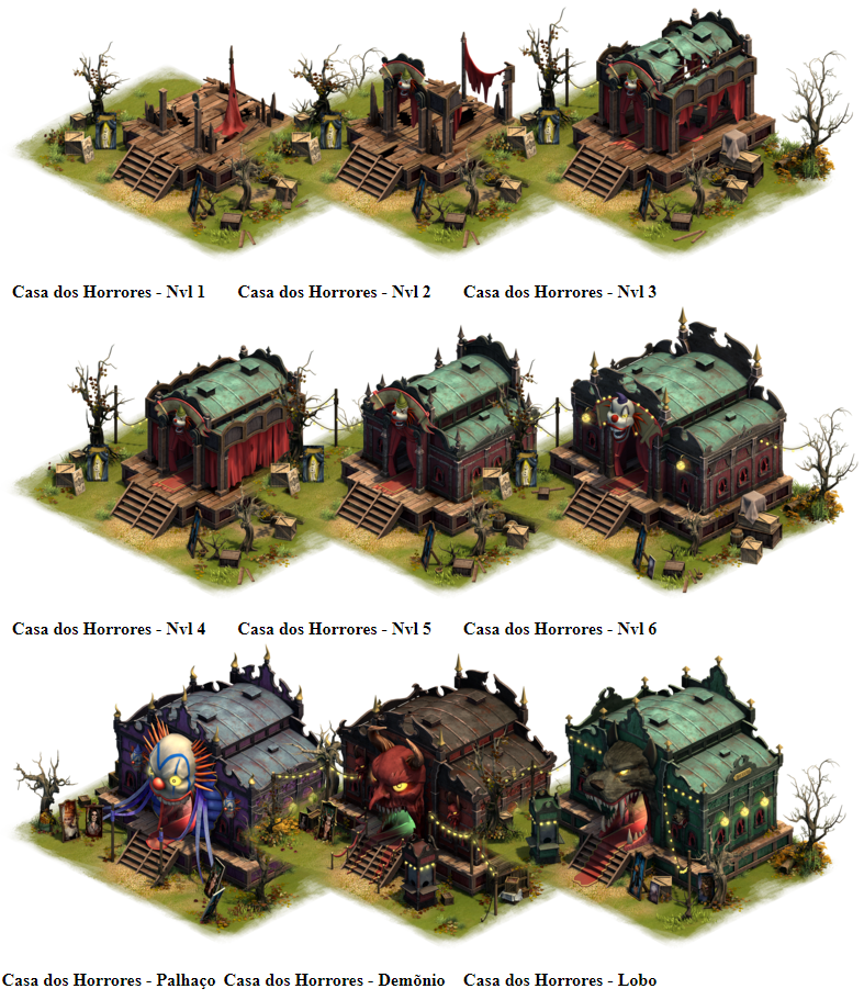 Vão existir mais três edifícios (na realidade apenas um que no nível final pode ter 3 diferentes características em termos das recompensas fornecidas). O edifício ou edifícios é a casa dos horrores e pode ter 6 níveis, ocupa um espaço de 3 x 4 e pode subir de era, necessita de estrada e pode ser saqueado se não estiver motivado. As melhorias de nível para este edifício podem ser obtidas pela grande recompensa ou nas etapas de missões. Ao chegar ao último nível temos que escolher um dos 3 tipos existentes: