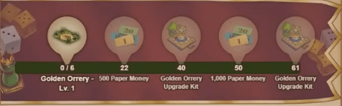 Forge Fact Finder: "Gastar 450 moedas de prata da taberna" ou "Contribuir com alguns pontos forge em grandes edifícios" e "Construir 3 decorações da sua era ou 4 decorações da era anterior"
