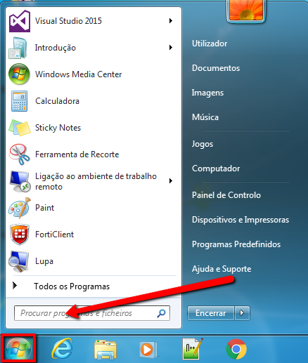 A activação desta funcionalidade é bastante simples, bastando para isso aceder ao menu "Iniciar" do Windows e localizar a caixa de pesquisa do Windows.