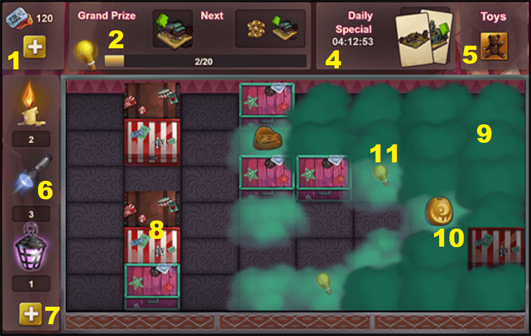 Neste evento, á semelhança do evento do ano passado, embora com um especto diferente vamos ter que descobrir caminho pela feira de diversões que se encontra mergulhada num nevoeiro intenso que teremos que dissipar. Conseguimos dissipar este nevoeiro utilizando umas ferramentas luminosas que se descrevem mais á frente. Para obtermos estas ferramentas teremos que conseguir bilhetes que irão servir de moeda de troca para obtermos as mesmas. Estes bilhetes podem ser conseguidos pela realização de missões, entrando diariamente no jogo e por incidentes recolhidos onde podem sair pacotes de bilhetes. Iremos ter disponíveis 3 ferramentas: Velas, lanternas e candeeiros onde começamos com 7, 3 e 1 respetivamente no início do jogo. Á semelhança de ferramentas de eventos anteriores, a vela dissipa o nevoeiro do quadrado onde for aplicado, a lanterna limpa a coluna onde for ativada, e o candeeiro limpa os quadrados ao redor. Quer as lanternas, quer os candeeiros, só podem ser ativados numa quadricula já sem nevoeiro e sem baús.