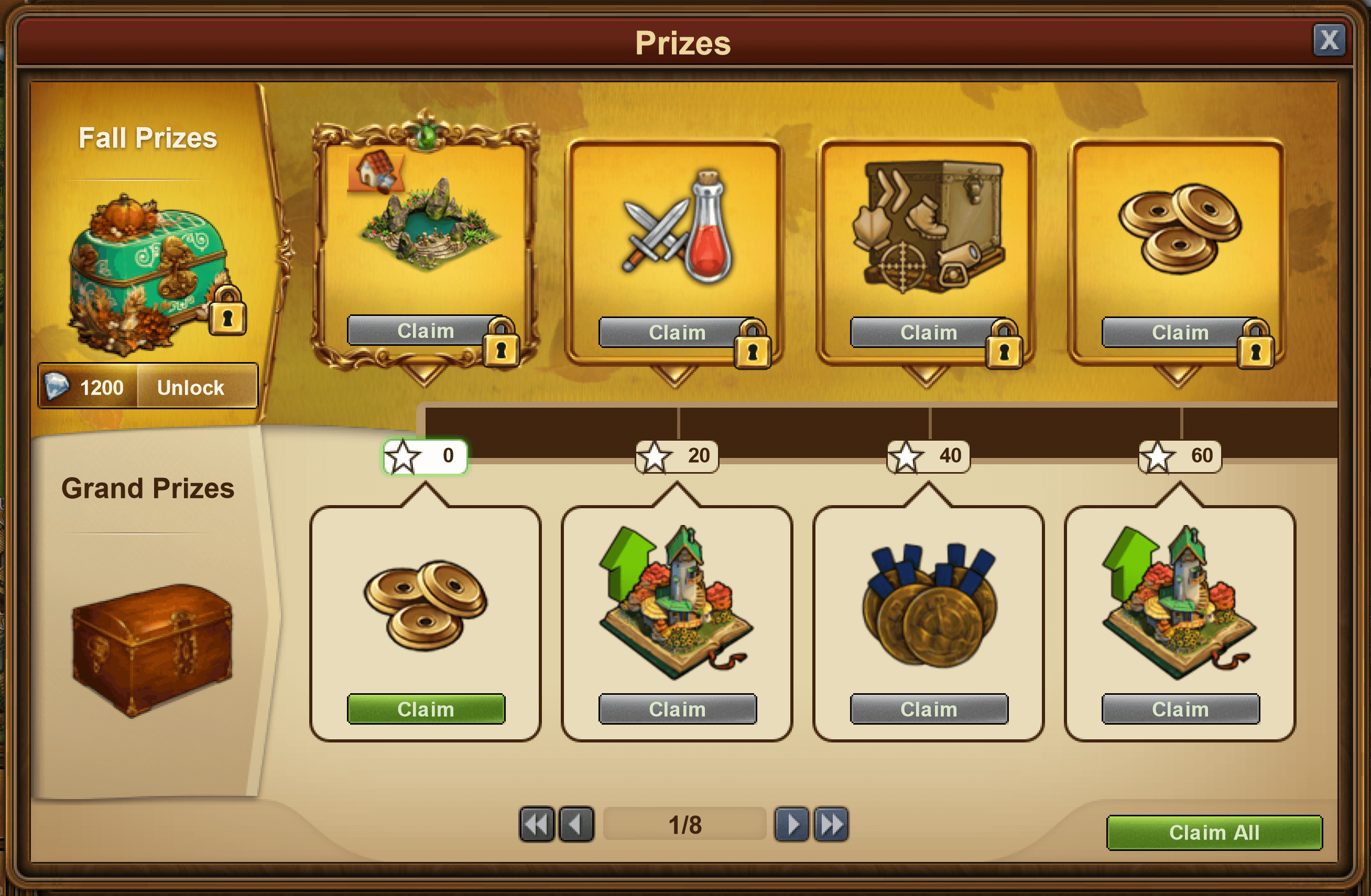 - Pelos números apresentados anteriormente (1 edifício + 7 melhorias) verificamos que para conseguir a oitava necessária, vamos ter que concluir mais duas grandes recompensas.