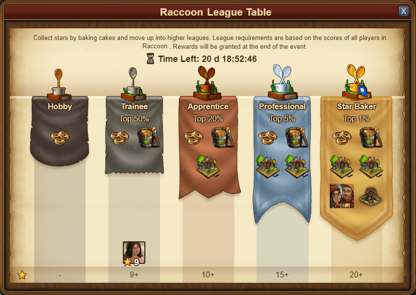 - Evolução para cada grande recompensa. Cada ingrediente consumido ocupa uma estrela numa lista de 20. Ao concluir as 20 iremos receber a grande recompensa e a lista fica novamente vazia.