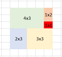 Uma possível disposição para um único conjunto completo conseguindo a máxima produtividade em termos de recompensas está representada na imagem abaixo.